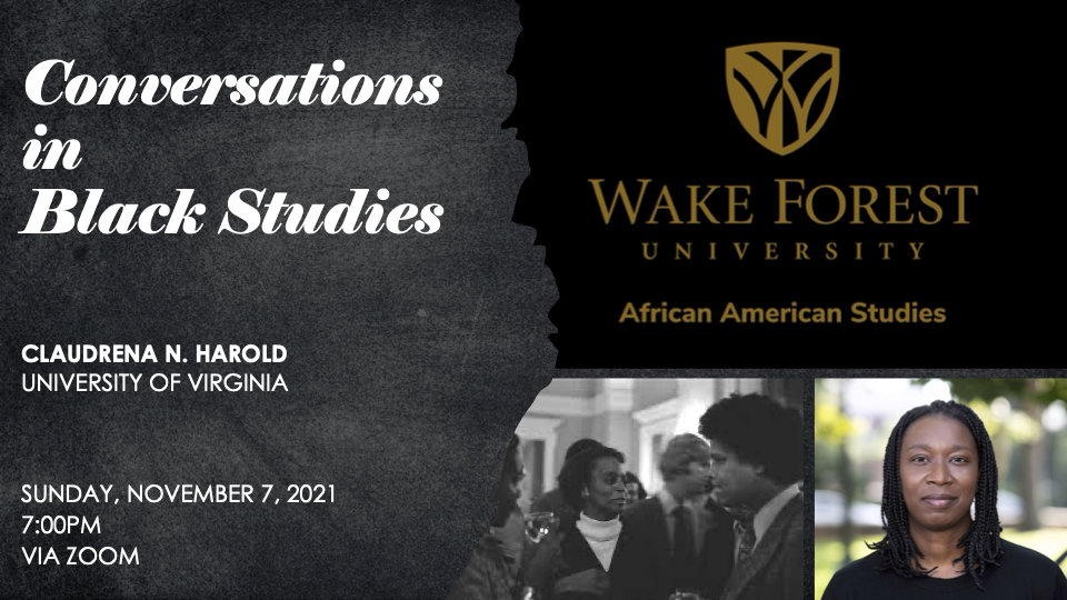 Join Wake Forest Professor of the Humanities and director of African American Studies Corey D. B. Walker for a public conversation with University of Virginia Edward Stettinius Professor of History and chair of the Corcoran Department of History Claudrena N. Harold.